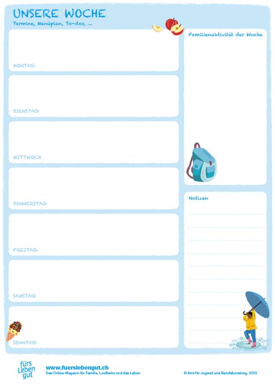 Wie leicht fällt es Ihnen, den Überblick zu bewahren im alltäglichen Familientrubel? Mit dem Wochenplaner und unseren Tipps fürs Familienmanagement sollte alles noch etwas leichterfallen. Lust, auszuprobieren?